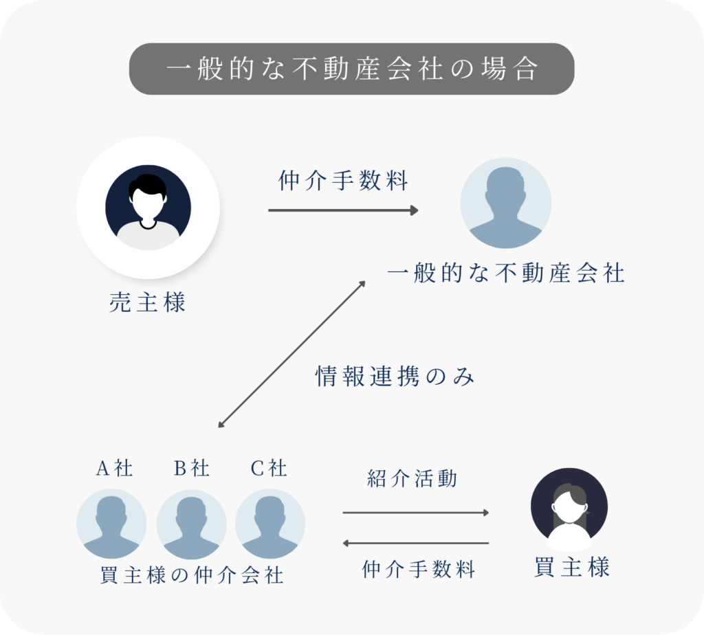 その対価として御礼手数料を支払い、各業者の販売意欲を高めることで、売却スピードと価格の双方を大幅に向上させます。